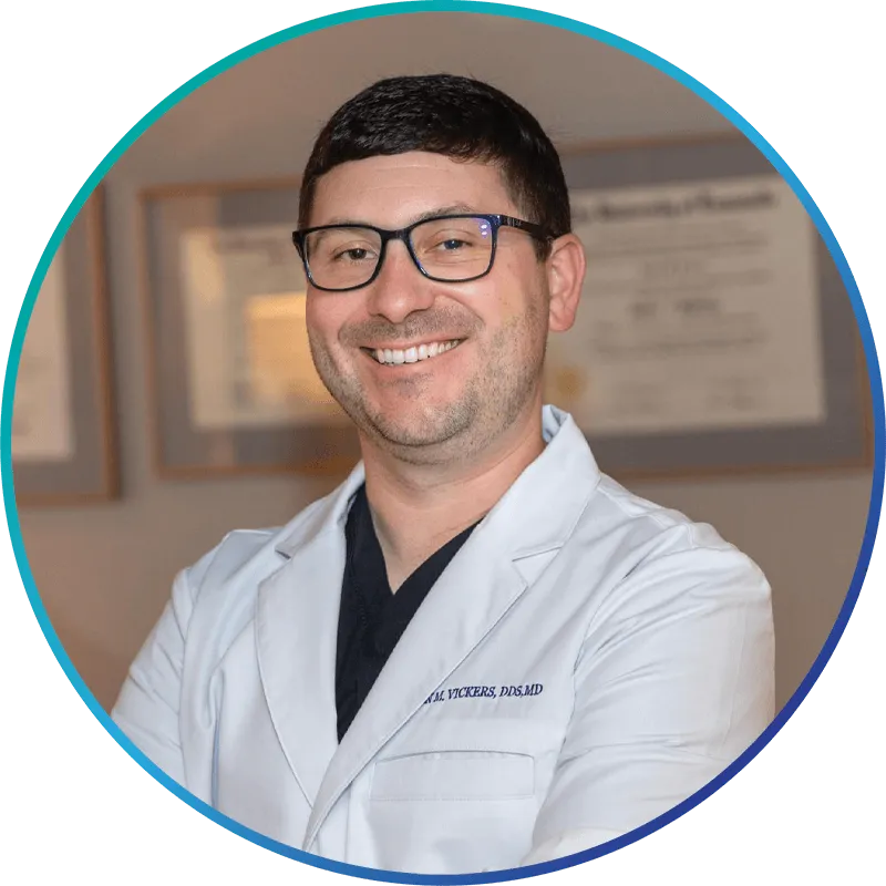 Dr. Vickers is passionate about oral surgery and his patients. As a sign of his commitment, he chose to spend two extra years obtaining his medical degree (MD) at the prestigious oral and maxillofacial surgery training program at the University of Louisville, where he was mentored by leading oral surgeons in his specialty. He especially has a particular interest in dental implants and bone grafting with an emphasis on minimally invasive therapies that shorten the course of treatment so that patients can replace missing or damaged teeth as quickly and comfortably as possible.